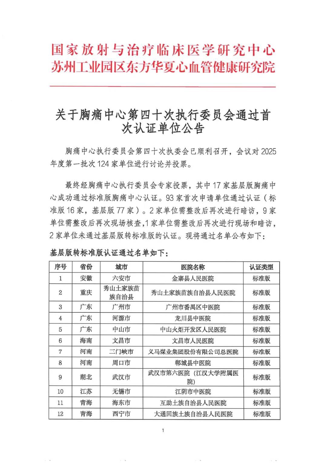 4月17日,中国胸痛中心总部发布《关于胸痛中心第四十次执行委员会通过首次认证单位公告》。历经层层严格审核,汉中市铁路中心医院顺利通过国家胸痛中心(基层版)认证。