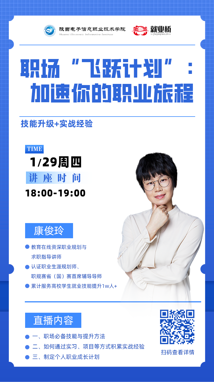 技能升级+实战经验=你的职业加速器面临未来职场,你准备好了吗?职业成长是一场持续的能力升级。本次讲座将带你高效掌握必备技能提升路径,学习通过实习与项目积累实战经验,并定制你的专属成长计划,助你实现从校园到职场的加速跨越。