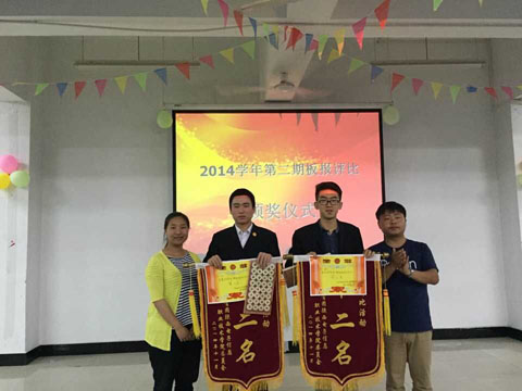 为加强班级之间的交流,增强班级荣誉感和凝聚力,2015年6月2日院团委在多媒体1121教室举行了以“平凡的世界 不甘平凡的奋斗”和“红色的五月”为主题的板报颁奖活动。院学生处处长田志岗、学生处办公室主任张春燕、团委书记兼学生管理科科长李勃及全体辅导员参加了颁奖活动。