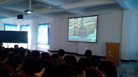 9月3日,是中国人民抗日战争暨世界反法西斯战争胜利70周年纪念日,为纪念这一伟大历史时刻,中国政府首次为抗战胜利日举行9·3大阅兵,早上8:30分,我院学生处组织全体学生在一号教学楼五楼多媒体教室集中收看了阅兵式现场直播及有关纪念活动。共同纪念抗战伟大胜利,见证伟大祖国的光荣与梦想;观看中,大家始终目不转睛地盯着屏幕,激动和喜悦之情溢于言表,当习近平总书记振臂高呼“让我们共同铭记历史所启示的伟大真理:正义必胜!和平必胜!人民必胜!”时,现场掌声经久不息,许多师生热泪盈眶。