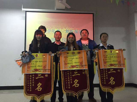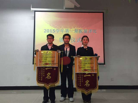 为加强班级之间的交流,增强班级荣誉感和凝聚力,2015年11月5日晚19:00院团委在多媒体1121教室举行了以“好学向上 持之以恒”和“读书破万卷 坚持是一种态度”为主题的板报评比颁奖活动。团委书记兼学生管理科科长李勃、辅导员代表及团委、学生会干部参加了此次活动。