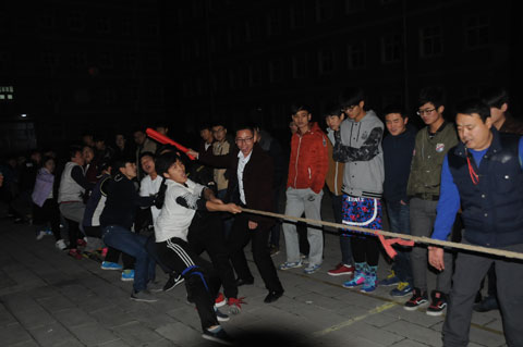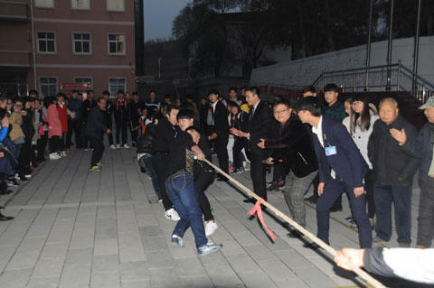 2015年11月26日下午,我院在一号教学楼广场前举办了陕电职院2015年“凝聚力量 共同进步 ”校园拔河比赛。