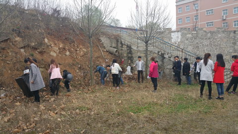 为了增强全院师生的环保意识与生态意识,使同学们在活动中体验绿色和谐校园的良好氛围, 2015年3月23日下午4: 30分,我院团委、学生会组织98名志愿者在学院教学楼两侧开展了以“绿色人文、和谐校园”校园卫生大清除活动。此项活动开展增添了校园绿色,达到了净化美化环境的目的。
