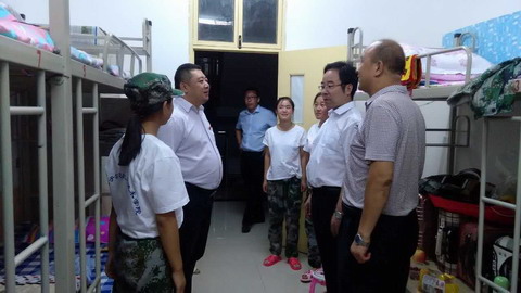 院领导一行每到一个宿舍都与新生亲切交谈,悉心地询问新生们生活习不习惯、寝室热不热、军训辛不辛苦,叮嘱新生如果遇到困难,一定要及时与辅导员和宿管老师联系,学校一定会帮助大家克服困难。