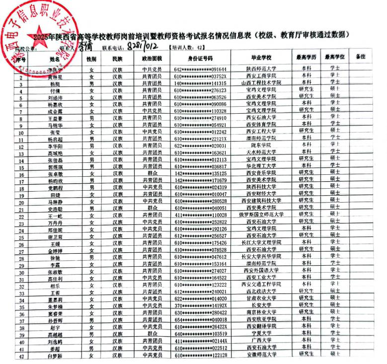 附件:2025年陕西省高校教师岗前培训暨教师资格教育基础理论知识培训报名人员公示名单(系统导出公示名单)