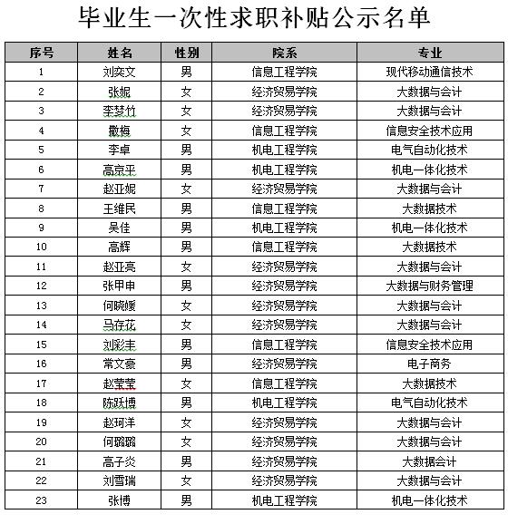 陕西电子信息职业技术学院关于2026届毕业生求职创业补贴补申报情况公示
