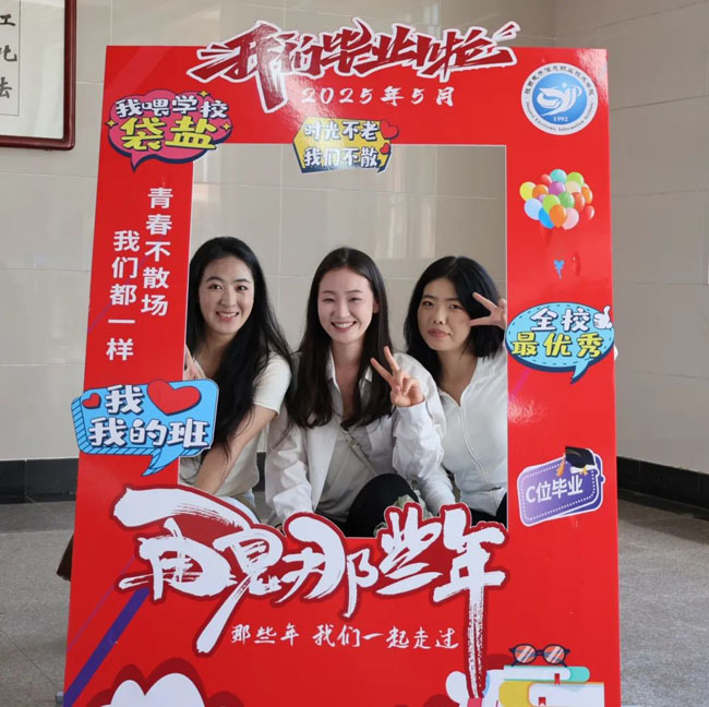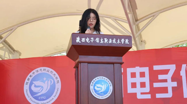 毕业生代表虎霞在发言中深情回顾了校园时光:“从实训室里的反复打磨,到图书馆里的挑灯夜读;从社团活动中的欢声笑语,到技能竞赛中的突破自我……母校的每一寸土地都承载着我们的成长。”她勉励学弟学妹一定要勤奋学习,勇于实践,积极参加各种实践活动,将书本知识转化为实际能力,在实践中不断成长和进步。