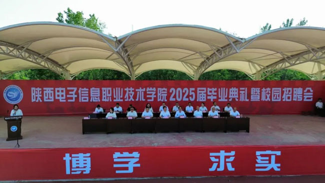 五月的校园绿意葱茏,离别的钟声与夏日的蝉鸣交织成诗。5月20日上午,陕西电子信息职业技术学院2025届毕业典礼在庄严的国歌声中拉开帷幕。理事长、院长王明星出席典礼并讲话,党委书记石光华等院领导与全体毕业生们共同度过这一学习生涯中最难忘的时刻。典礼由院党委委员、副院长石晓英主持,现场气氛热烈而庄重。