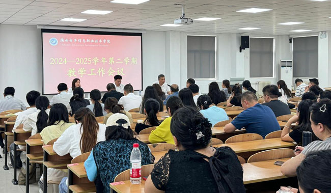 6月17日,陕西电子信息职业技术学院在1号教学楼1207多功能厅召开教学工作会议。会议全面总结本学期教学成果,部署期末重点任务,为新学期教学工作谋篇布局。