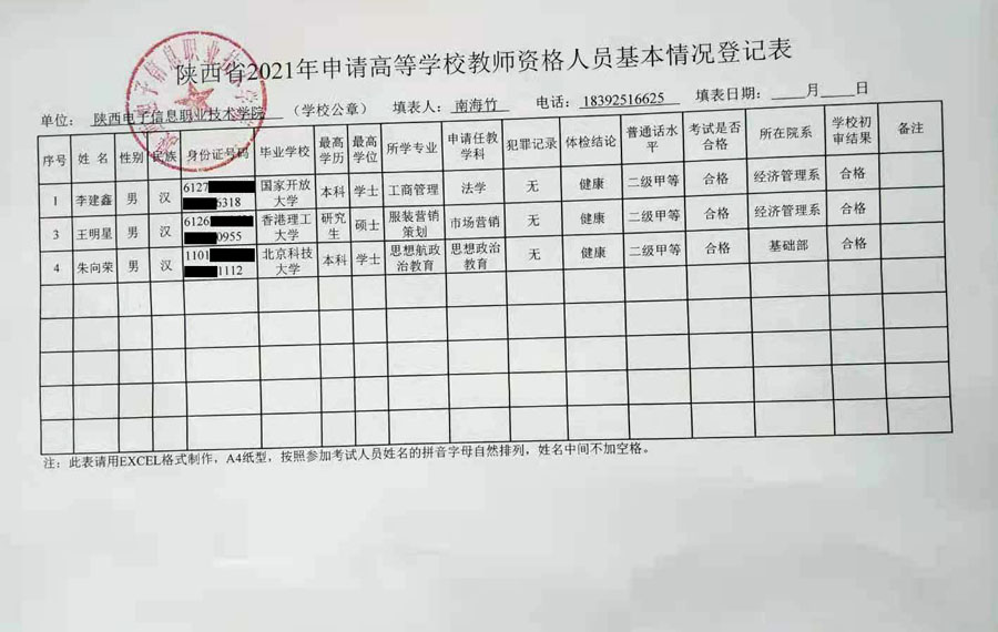 陕西省2021年申请高等学校老师资格人员基本情况公示