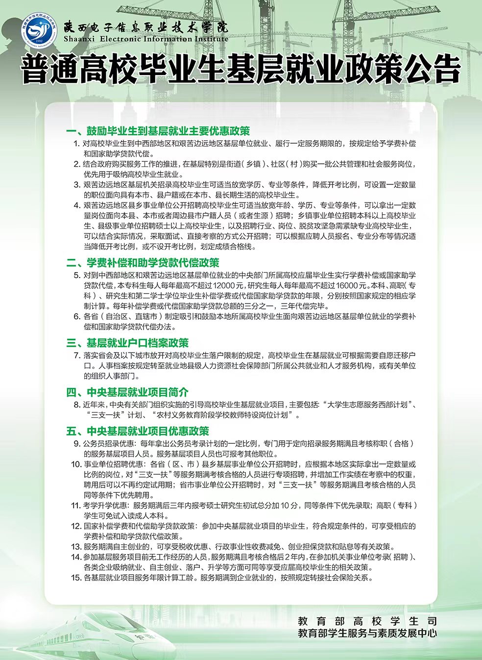 普通高校毕业生基层就业、自主创业、应征入伍政策及就业服务公告