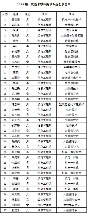 陕西电子信息职业技术学院关于2025届毕业生求职创业补贴申报情况公示