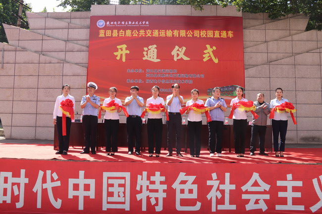8月22日上午,我院在一号教学楼广场举行校园直通车开通仪式,院党委书记石光华,理事长、院长王明星,蓝田县白鹿公共交通运输有限公司董事长、总经理黄亚玲,蓝田县公安局交警大队副大队长赵欢锋,蓝田县交通执法大队副书记胡伟出席活动并剪彩,全院教职工及学生代表参加开通仪式。活动仪式由党委委员、副院长李泽宇主持。