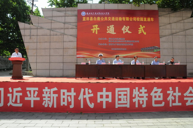 王明星在致辞中指出,校园直通车既是学院的窗口,也是校园一抹靓丽的风景线,是学院坚持以师生为本,践行“我为群众办实事”,提高后勤保障、服务师生的具体体现。校园直通车的开通,充分体现了蓝田县交通运输局和蓝田县白鹿公共交通运输有限公司支持教育、关爱师生、尊重人才的优秀企业文化和崇高的社会责任感,希望全体师生文明出行,共同营造安全、文明、有序的交通环境。