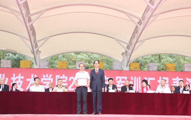 大会在庄严的国歌声中拉开帷幕。在大会上,对表现突出的优秀学员、优秀教官、优秀指导员和先进连队、文明宿舍进行了表彰,参训学生进行了分列式和军事科目汇报表演,全面展示了15天来的军训成果,展示了当代大学生的精神风貌。学院向承训部队赠送了锦旗。机勘院的专家进行了无人机飞行表演。