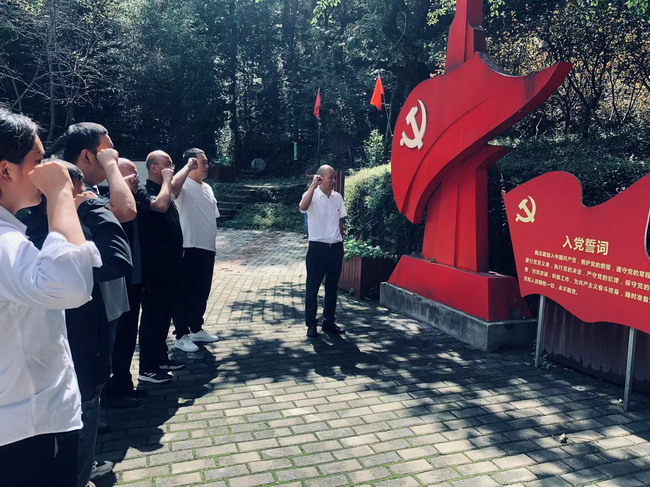 首先,在北宽坪红色教育基地,全体党员面对党旗重温入党誓词。随后在讲解员的带领下参观爱国主义教育展馆、瞻仰中共商洛县委县政府旧址纪念馆,观看商洛革命历史宣传片和国防教育宣传片,参观国防力量沙盘模型,了解每一件历史照片、先辈遗物、战斗武器背后的革命故事,回顾李先念等老一辈无产阶级革命家在商州与敌人英勇战斗的英雄事迹,感受革命前辈不怕牺牲的革命精神和矢志不渝的革命信念。