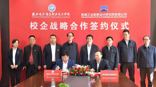 石光华在签约仪式上讲话。他说,校企双方签订战略合作协议标志着合作已进入实质阶段,他对双方的合作表示高度赞扬和祝贺,对机勘院给予陕电院的支持表示感谢。他强调,机勘院是实力雄厚的研究型央企,人才济济,事业发展遍布全国、全球,我院与机勘院的合作与以往的校企合作不同点在于突出了学科专业建设、人才培养,对于我院深化教学改革、提高人才培养质量具有重要意义。石光华希望校企双方有效推动战略合作协议落地生根,开花结果,实现共赢,并希望推动党建领域的学习交流。