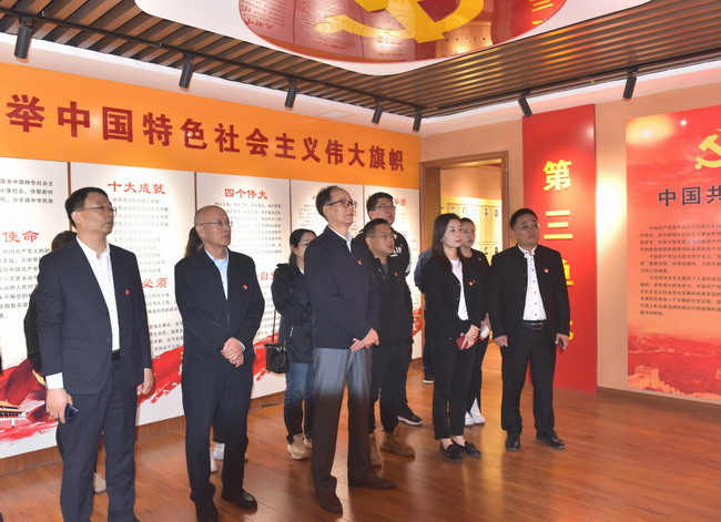 参观结束后,全体党员面向党旗,举起右拳,重温入党誓词,坚定政治信念。