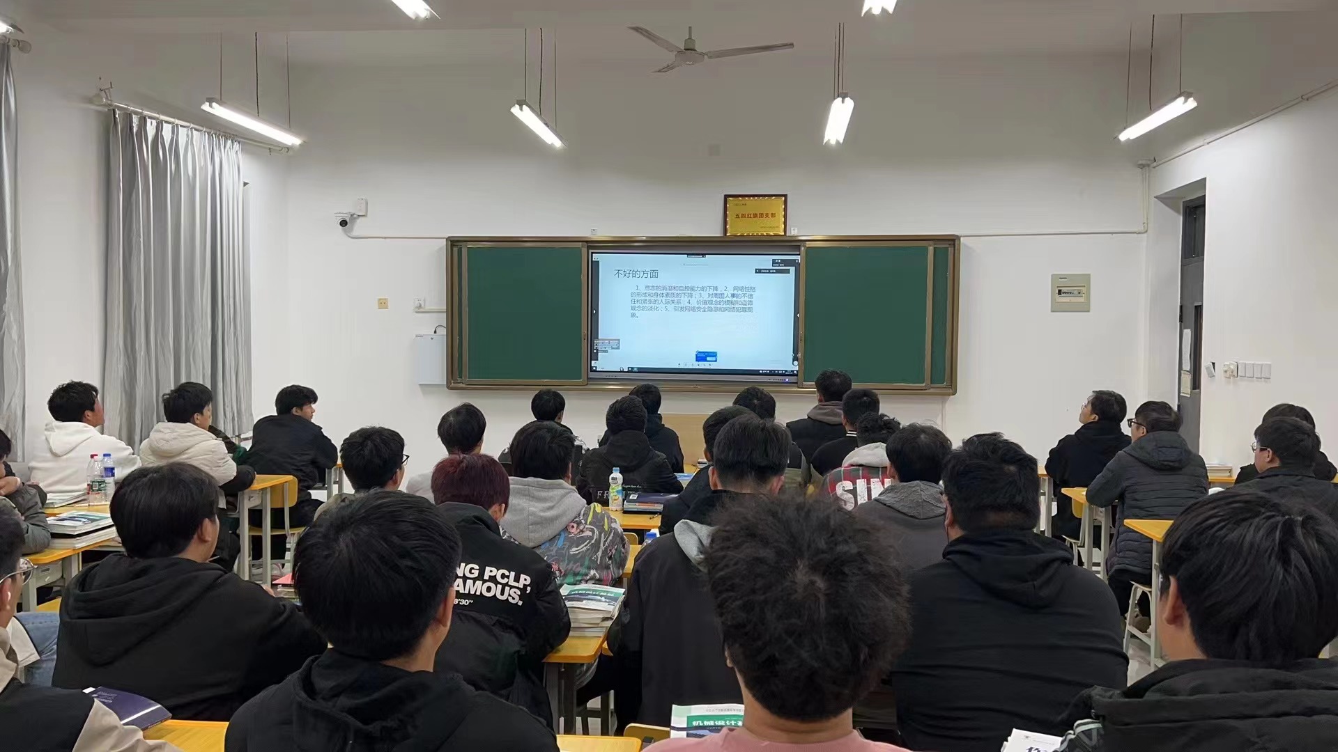 会后蓝田县国保大队大队长何平利、副大队长刘宏儒和国保大队民警在副院长李泽宇、保卫处处长田志岗的陪同下,到各个分会场查看知识讲座观看效果。同时,就学校预警防范向管理层、教师和班主任提出了指导意见和要求。