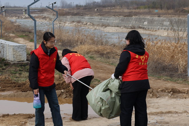春日的灞河,碧波荡漾,杨柳吐绿,一群身着“志愿红”的身影在河岸忙碌,成为一道亮丽的风景线。3月8日,在“保护母亲河日”来临之际,陕西电子信息职业技术学院的青年志愿者们携手蓝田县志愿者协会、国能销售西安分公司团支部,在秦岭北麓的灞河畔开展了“保护母亲河,争当河小青”志愿服务活动,用青春实践书写新时代的雷锋故事。