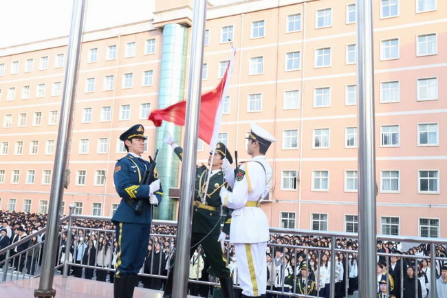 7时40分许,晨光初照,学院国旗护卫队踏着坚定的步伐迈向升旗台。随着国歌的激昂旋律响起,全体师生肃立,目光炯炯,注视着五星红旗缓缓升起。