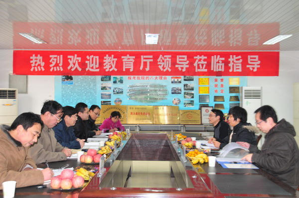 2009年11月19日下午,以西安翻译学院工会副主席、党办主任徐明同志为组长,西京学院宣传部部长马成胜和陕西国际商贸学院财务处处长栗冬同志为成员的专家组,代表陕西省教育厅对我院工作进行全面检查和指导。我院董事会秘书兼院长助理陈文达、代院长邢永华、院党政办主任杨瑞卿、财务处处长曹晓东、教务处处长刘战鹏同志参加了汇报会。