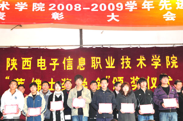 2009年我院以邓小平理论和“三个代表”重要思想为指导,认真学习实践科学发展观,用科学发展观统领各项工作,在院董事会和院务委员会的领导下,各项工作取得了丰硕成果,涌现出了一批先进集体和先进个人。为表彰先进,激励学生奋发学习,促进学院发展。大会对依据《陕西电子信息职业技术学院优秀学生、先进班集体评选办法及条件》,经群众评议,班级综合测评,系(部)推荐,学生处审核,院务会研究决定0801数控技术专业班等5个先进班集体,龚娇等92名同学为三好学生,吴辉等76名同学为文体活动积极分子,贺建银等54名同学为优秀学生干部。大会上院领导为获奖的集体和个人颁发了荣誉证书和奖品。