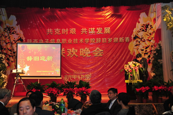 2010年1月16日,我院全体师生在西安市傣家楼饭店隆重举行了辞旧迎新联欢晚会。应邀出席晚会的嘉宾有陕西省教育厅民办教育处处长石光华、副处长李维民、学生处处长张长保、国家杨凌农业高新技术产业示范区招商局局长李春安、新加坡莱佛士教育集团中国区总裁周国础以及学院董事会董事长韩恩业、副董事长林纹光、学院党委书记李云济、外事学院党委书记李玉华、西京学院党委书记何安聚等领导。