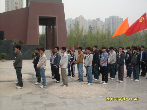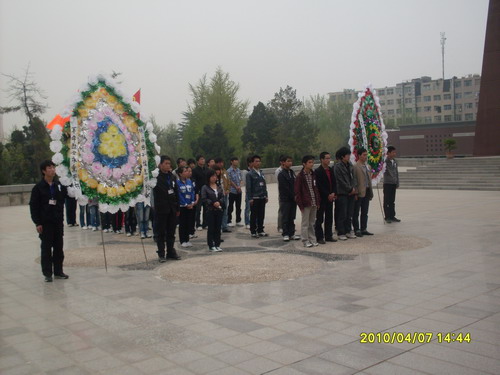 2010年4月7日下午,我院团委组织40余团员青年胸戴白花,怀着无比敬仰的心情来到西安烈士陵园,祭奠长眠在这里的先烈们。他们在烈士纪念碑前举行了庄严而肃穆的祭奠仪式。在讲解员的带领下参观了烈士纪念馆,聆听了烈士们的光荣事迹。最后,同学们手持白花,祭扫烈士墓碑。