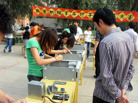 经过一个多月的精心策划,在院领导的大力支持以及全院师生共同努力下,由院团委主办,社团部计算机协会承办的首届计算机组装大赛于5月26日在学院操场成功举办。