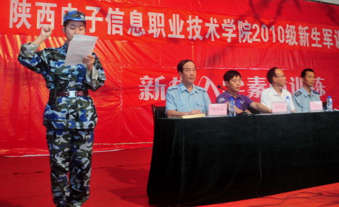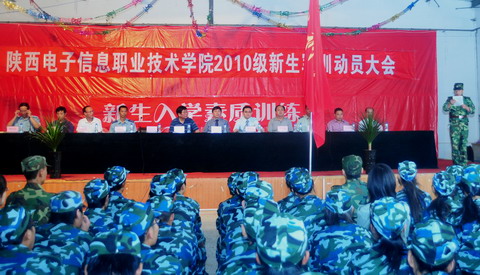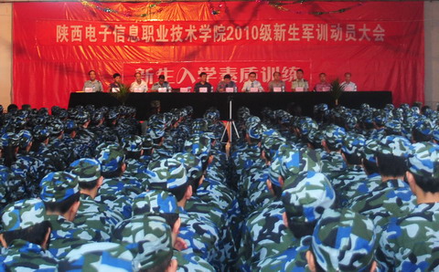 9月6日上午9时30分,陕西电子信息职业技术学院2010级新生军训动员大会在学院三楼礼堂隆重举行。2010级所有新生精神抖擞成方队集结,接受军训动员。院党委书记李云济、院长邢永华、院董事会秘书陈文达、院长助理田志岗、院办主任杨瑞卿、学生处处长马放奇、教务处处长刘战鹏、总务处处长杜晓科、学生处副处长尹海涛、院团委书记朱晓辉等领导出席大会。大会由院办公室主任杨瑞卿同志主持。