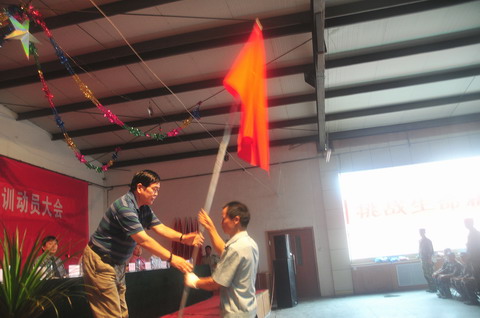 院党委书记李云济同志在动员会上宣布了军训团领导和组成人员名单,并为军训团授予了团旗,院董事会秘书陈文达同志为各个军训连授予了连旗。