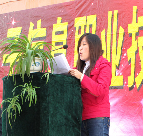 随后先进班集体代表武燕和优秀学生代表王卓同学分别代表受表彰的先进班集体和先进个人在大会上发了言。他们从不同角度表达了要珍惜荣誉,再接再厉,继续为学院发展做贡献的决心和信心。