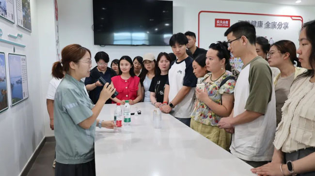 在农夫山泉股份有限公司,眼前一条条高速运转的智能化生产线和先进生产工艺令人赞叹不已。信息工程学院、机电工程学院的教师们更是拿起手机拍照,兴奋地表示要将这些前沿的智能制造技术分享给学生,让课堂与产业前沿无缝对接。