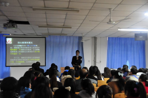 11月13日下午,我院邀请西安五进消防知识科教站教官袁智伟来学校为全体教职工及学生干部作消防安全知识培训。