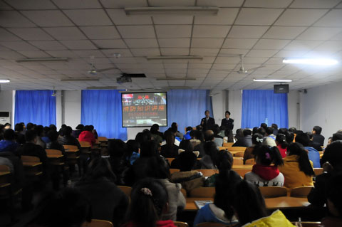 在讲座中,袁智伟教官结合近年来的火灾案例,播放了一系列火灾防御不当而造成悲惨事件的现场图片,就消防日常管理、检查以及疏散逃生的基本常识和消防火灾的应急预防等进行了深入浅出的讲解。结合实际对预防火灾的基本常识,火灾发生、发展、熄灭的基本规律和特点等进行说明,讲授了如何防火、扑灭初期火灾、逃生自救,灭火器的类型及使用方法,车中着火的应急方法。在讲解过程中,袁智伟还进行了实物演示。