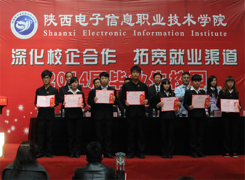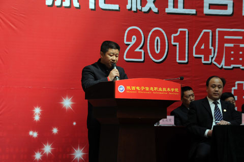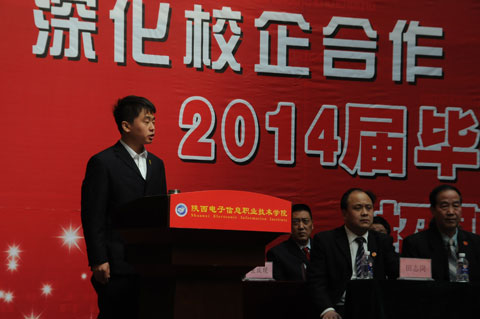 院理事会理事长穆耀辉致欢迎词。他向前来选拔我院2014届毕业生的用人单位表示衷心的感谢和热烈的欢迎,针对目前的就业形势,他希望2014届毕业生积极转变就业观念,确立合理的就业期望值,珍惜每一个就业机会,积极与参会单位、企业应聘签约;希望各用人单位选拔到合适的人才;同时也真诚希望在校学生提前进入角色,把校园招聘会作为锻炼和提高自身就业竞争力的平台,及早谋划个人就业计划,为今后实现顺利就业打下良好的基础。开幕式上,院党委书记史军胜代表学院与巨腾国际控股有限公司进行了学生实习实训基地和人才培养基地相互授牌。并为寒假参加社会实践获得优秀员工的学生颁发了荣誉证书和奖金,毕业生代表王翔在大会上发言。