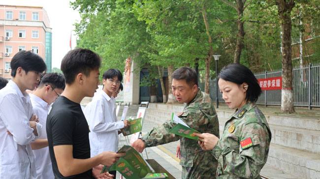 宣讲会上,蓝田县人民武装部文职副部长李岩从征兵流程、入伍条件、优惠政策、部队生活等方面进行全方位介绍,帮助同学们深入了解参军入伍的重要意义和广阔前景。他用生动的语言和真实的案例,让同学们对参军入伍有了更深入的了解,也让大家感受到了军人的荣耀与责任。同时,现场还设立了答疑环节,为有意向参军的同学解答疑惑,提供专业指导。现场气氛热烈,同学们积极提问,副部长李岩耐心解答,现场不时响起阵阵掌声。许多同学表示,通过这次宣讲会,他们更加坚定了参军报国的决心,希望能在部队中磨炼自己,为国防事业贡献一份力量。宣讲会结束后,同学们在教学楼广场现场咨询征兵相关问题。