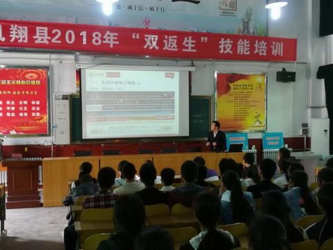 为进一步落实“双百工程”学院结对帮扶凤翔县教育扶贫项目计划,5月24日至28日,我院实验实训中心李小奎、数字传媒系党米花二位专业教师到凤翔县职教中心培训基地,对250余名“双返生”进行了为期五天的电子商务实用技能培训。
