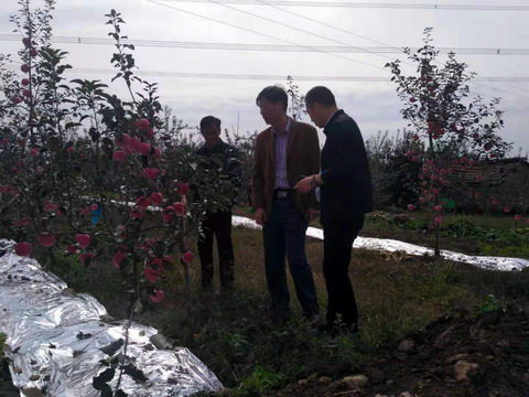 林工祺一行在凤翔县教体局办公室副主任翟军刚、县教体局脱贫办主任杨亮等陪同下,来到凤翔县范家寨镇沈家沟村听取了村主任胡小兵介绍了该村脱贫攻坚开展情况,同时对村优质苹果产业发展作了推介。